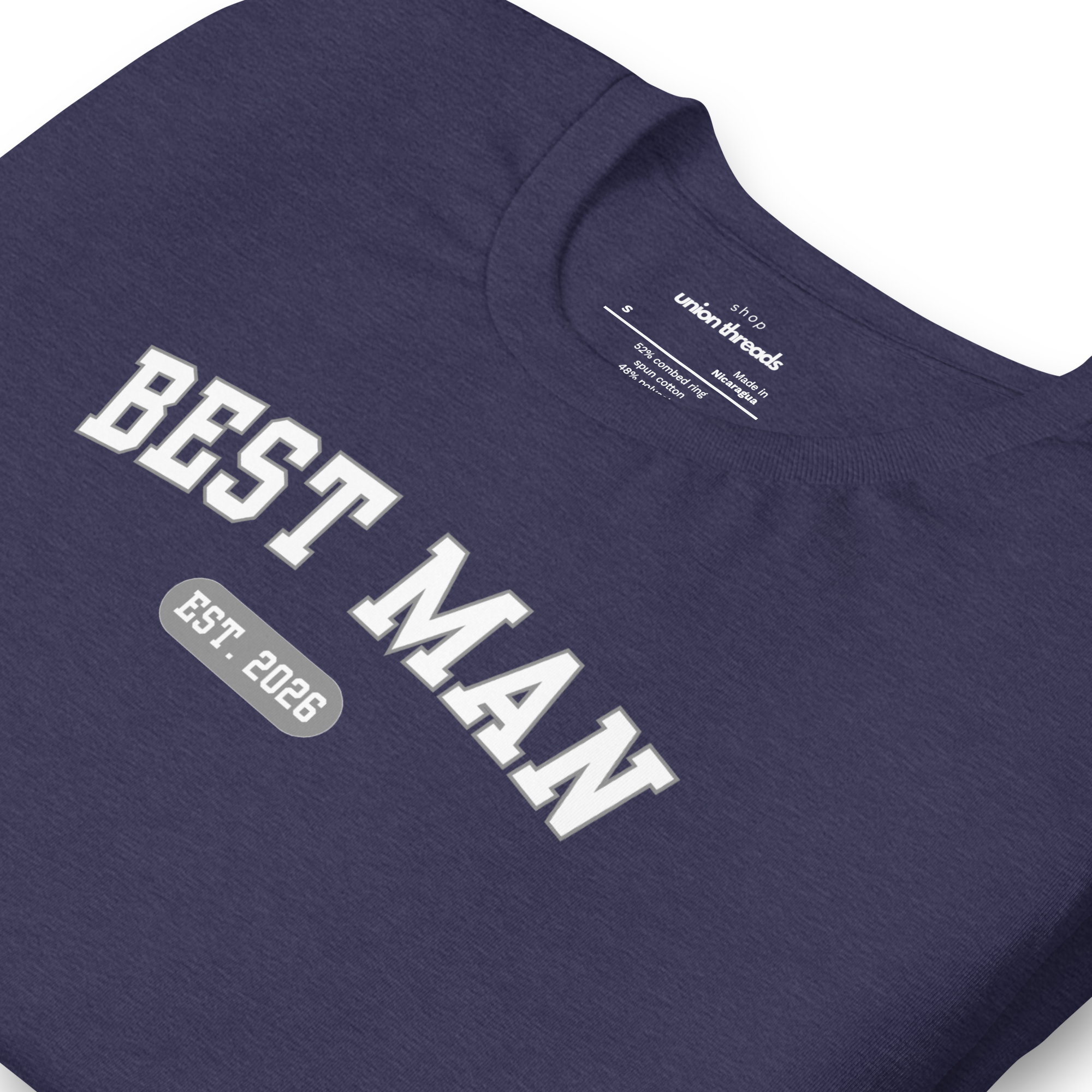 Introducing the Best Man Varsity T-Shirt—the ultimate blend of style and comfort, made for all of the wedding festivities. Made from soft, lightweight fabric with just the right amount of stretch, it's perfect for those long days of celebration.