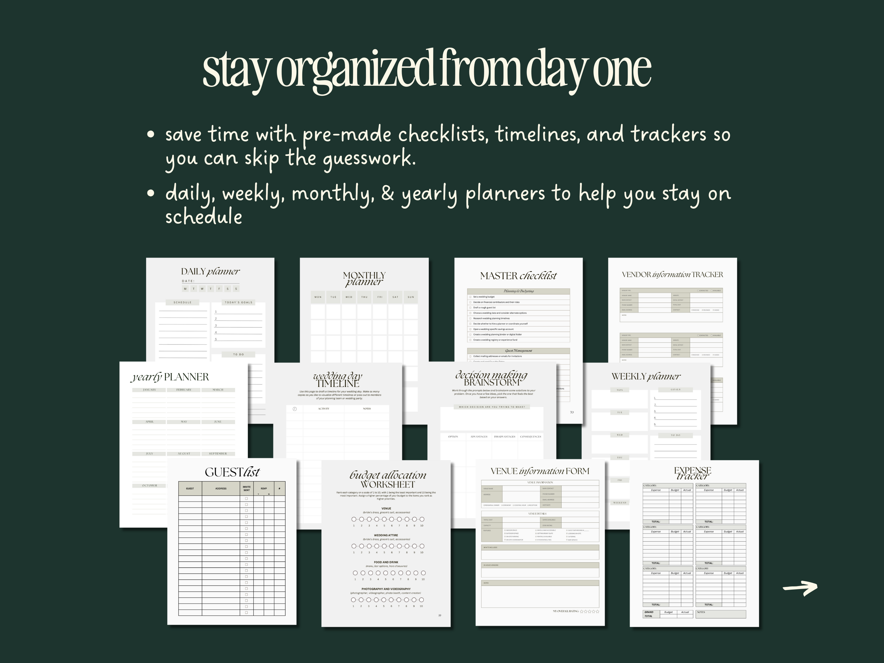 ✅ Day-Of Prep – Master wedding checklists, wedding schedules & last-minute details